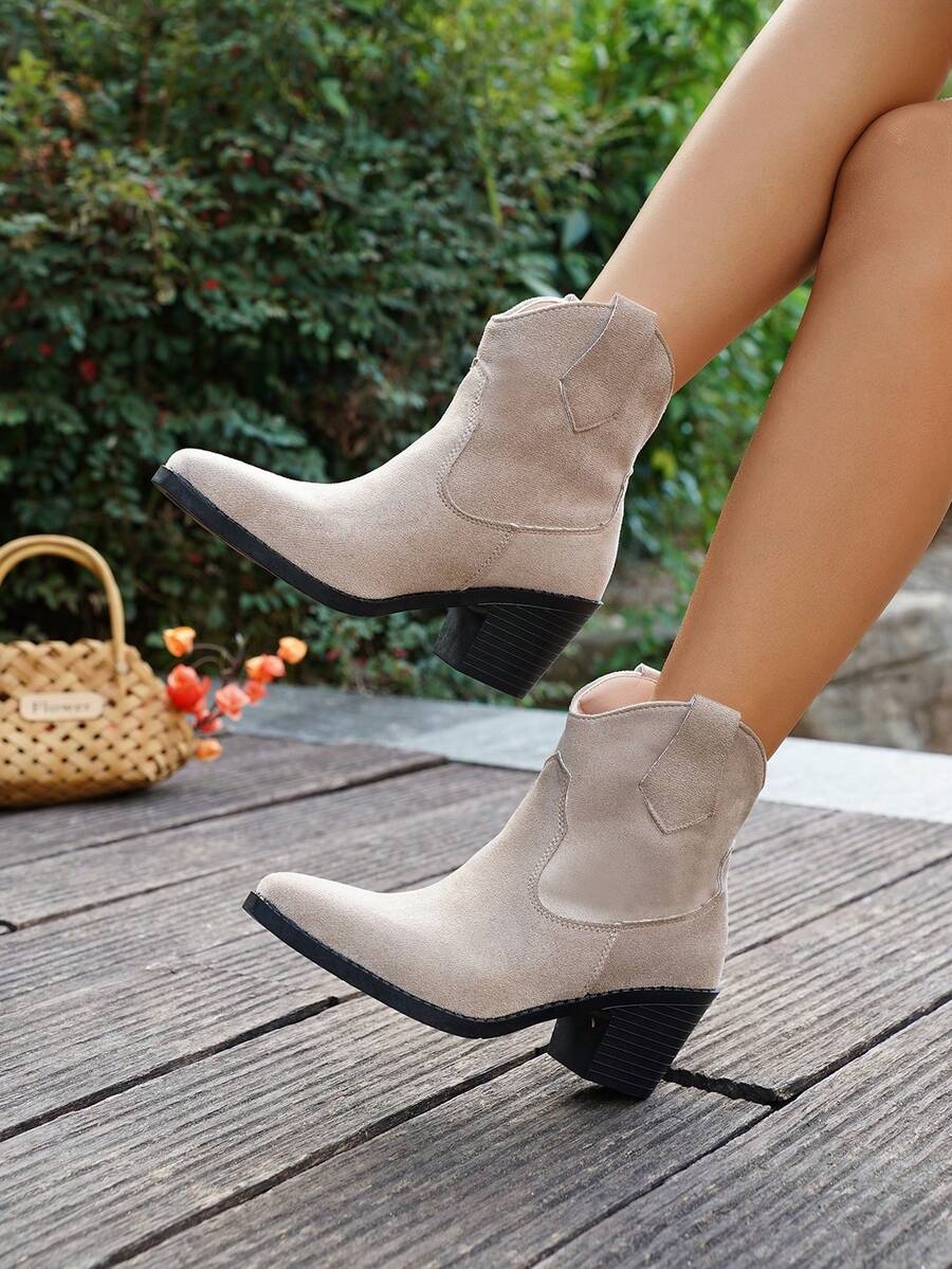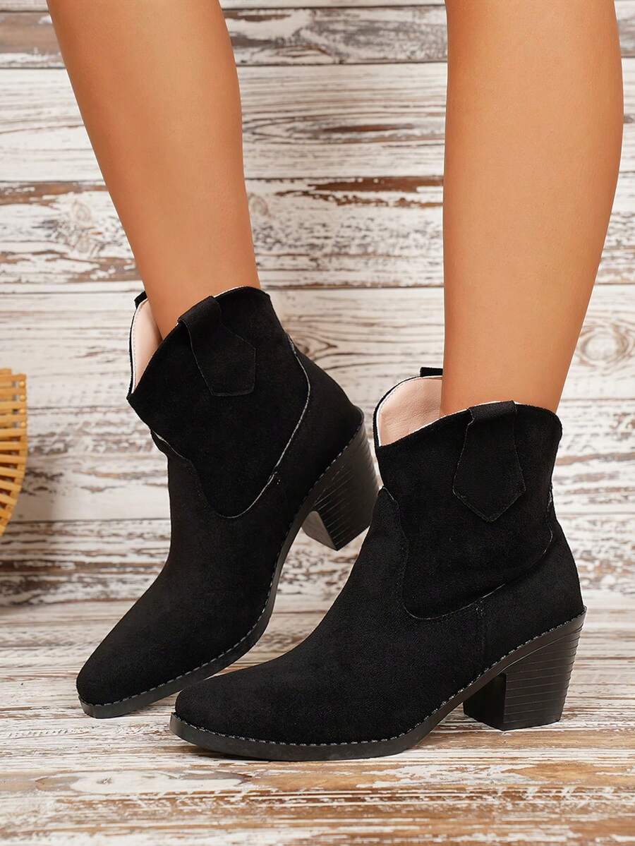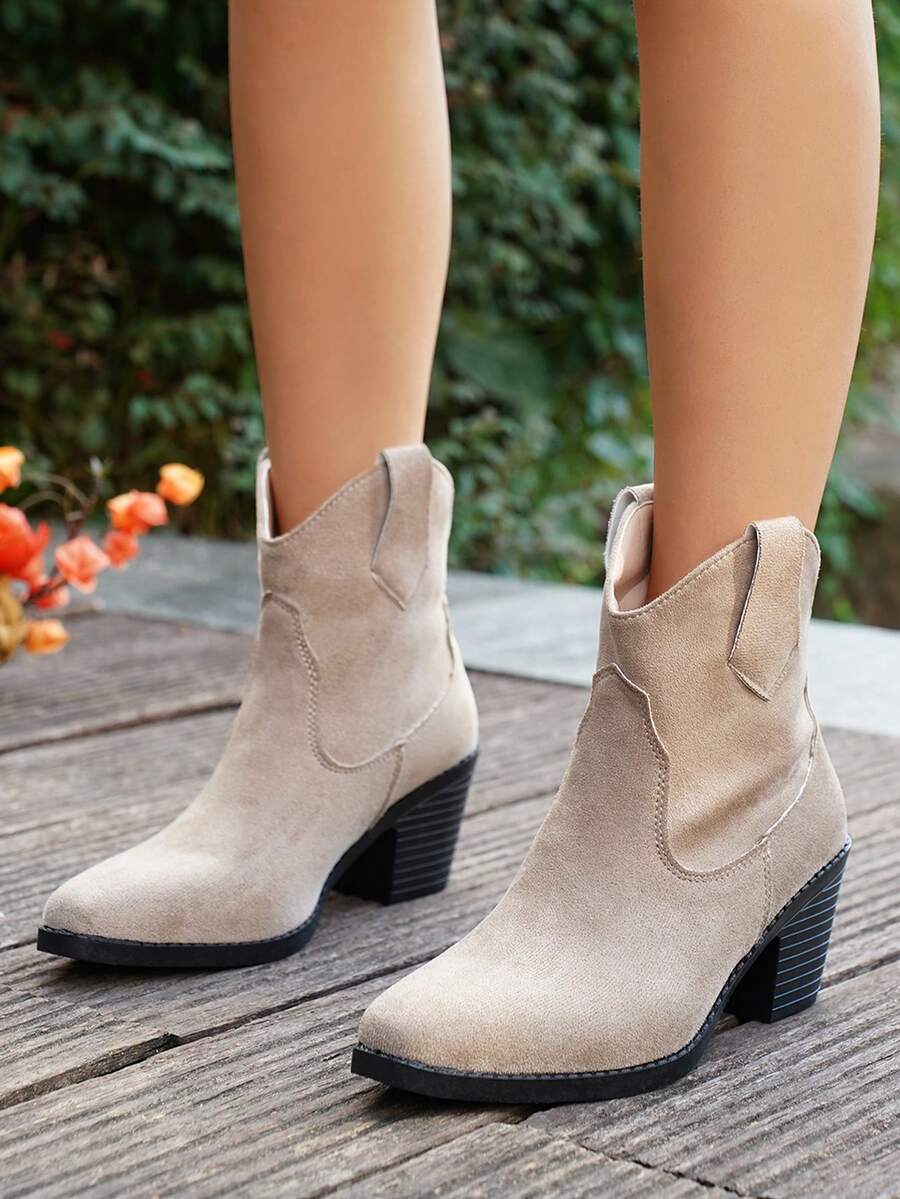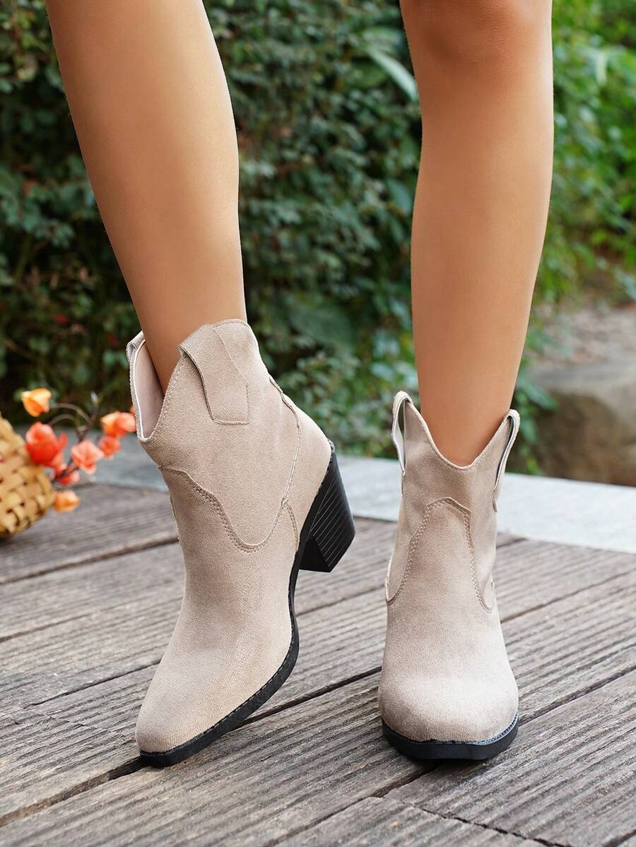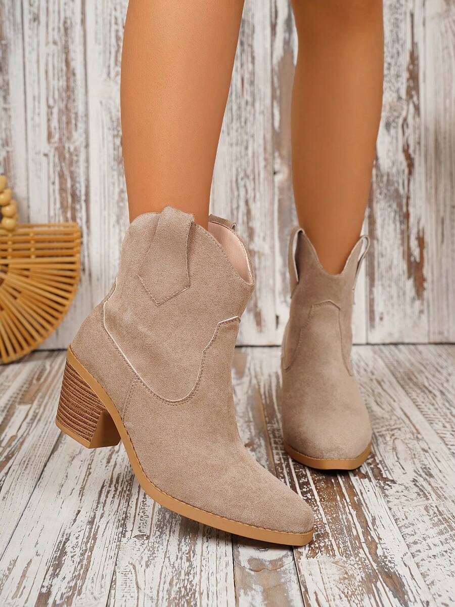 Ženske retro čizmice s debelim potpeticama i V-izrezom, svestrani evropski stil plus veličina, proleće/jesen