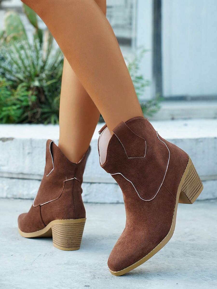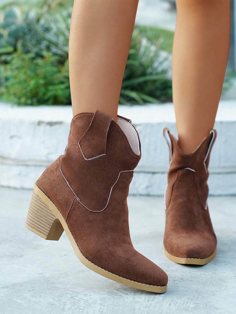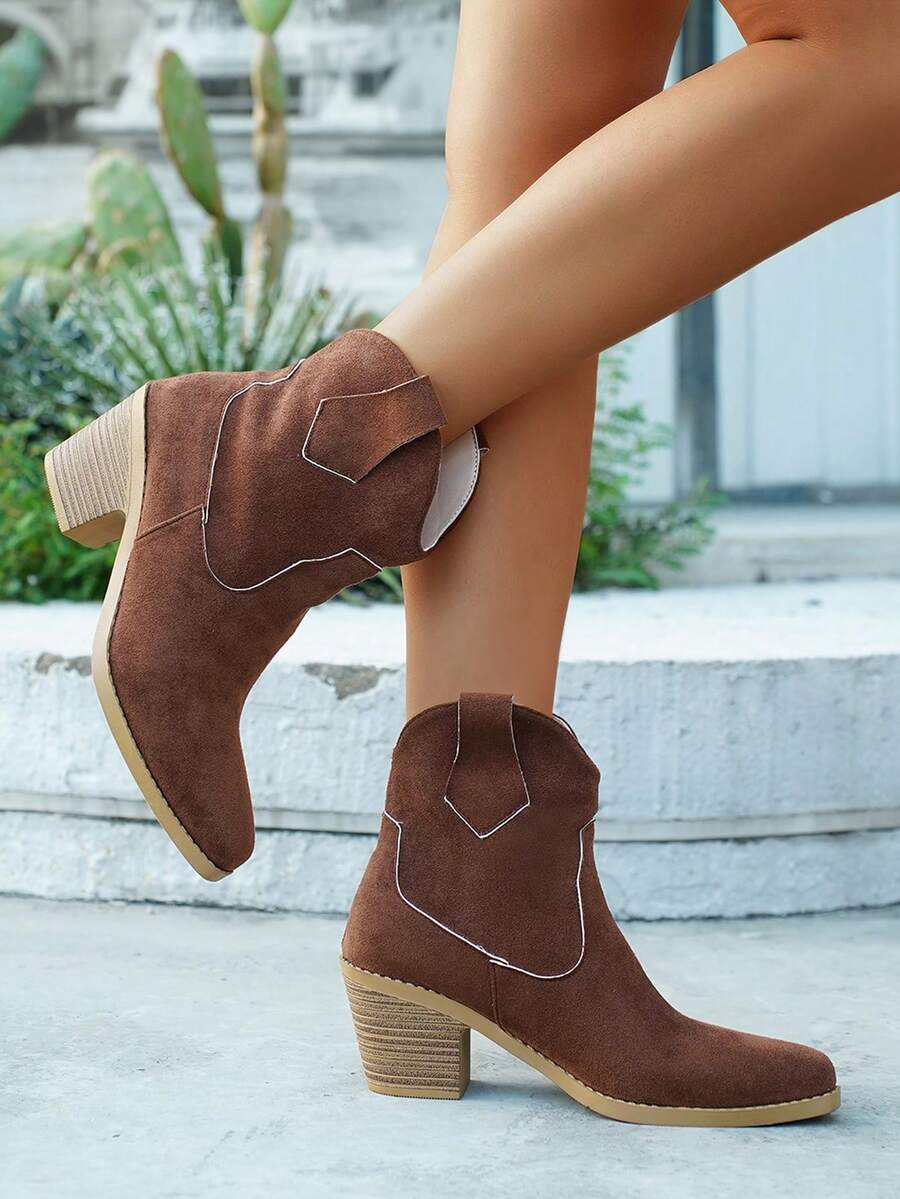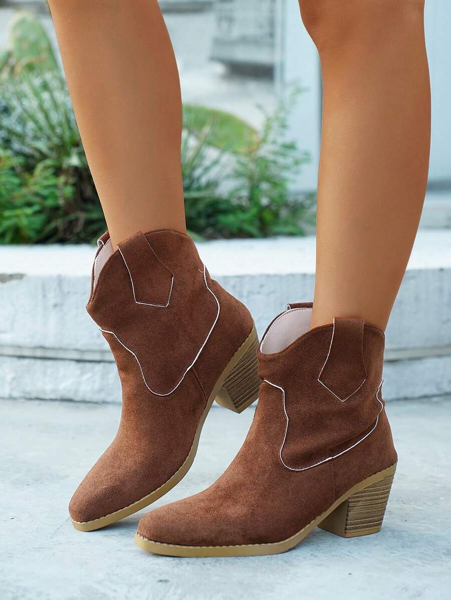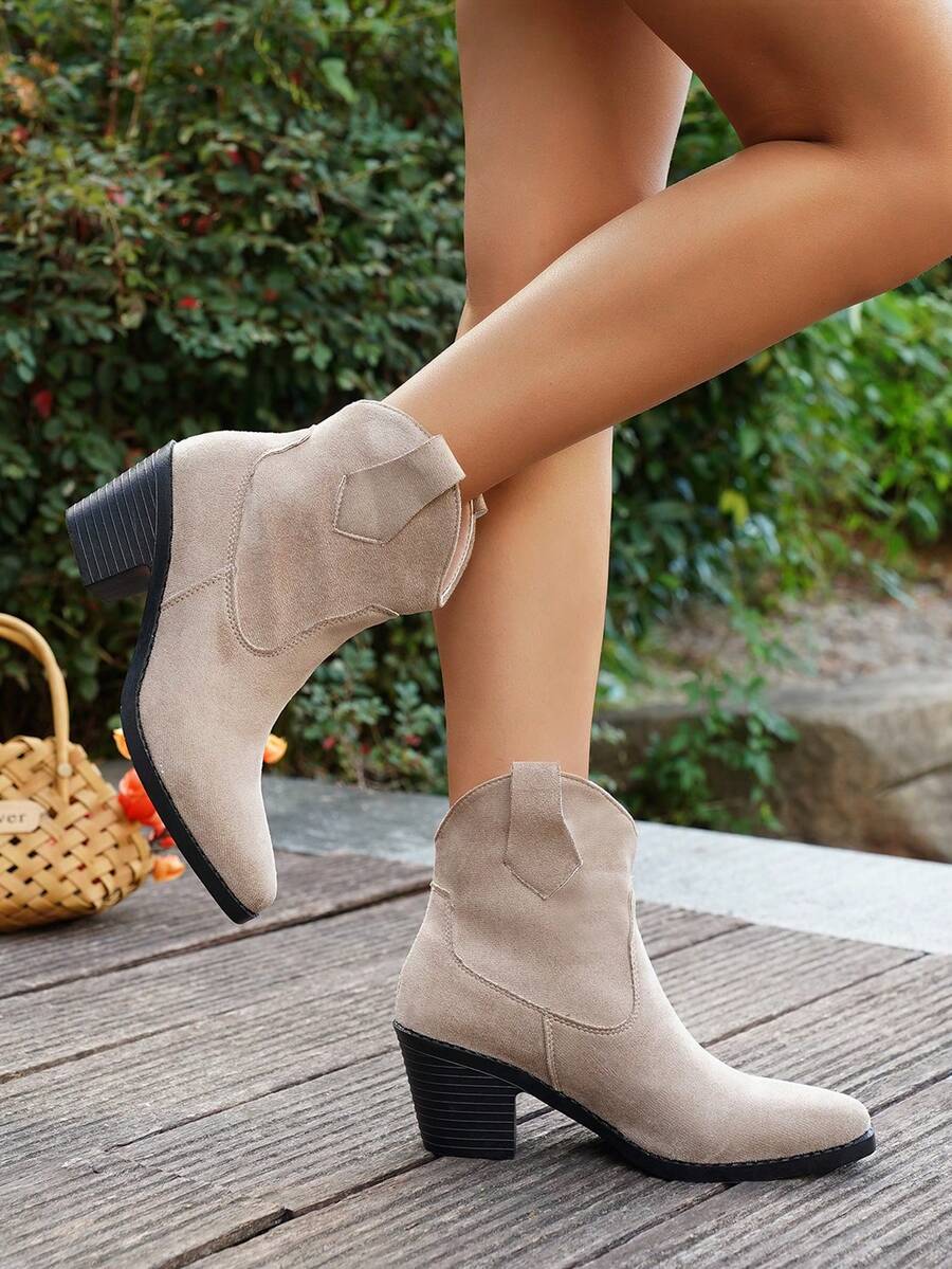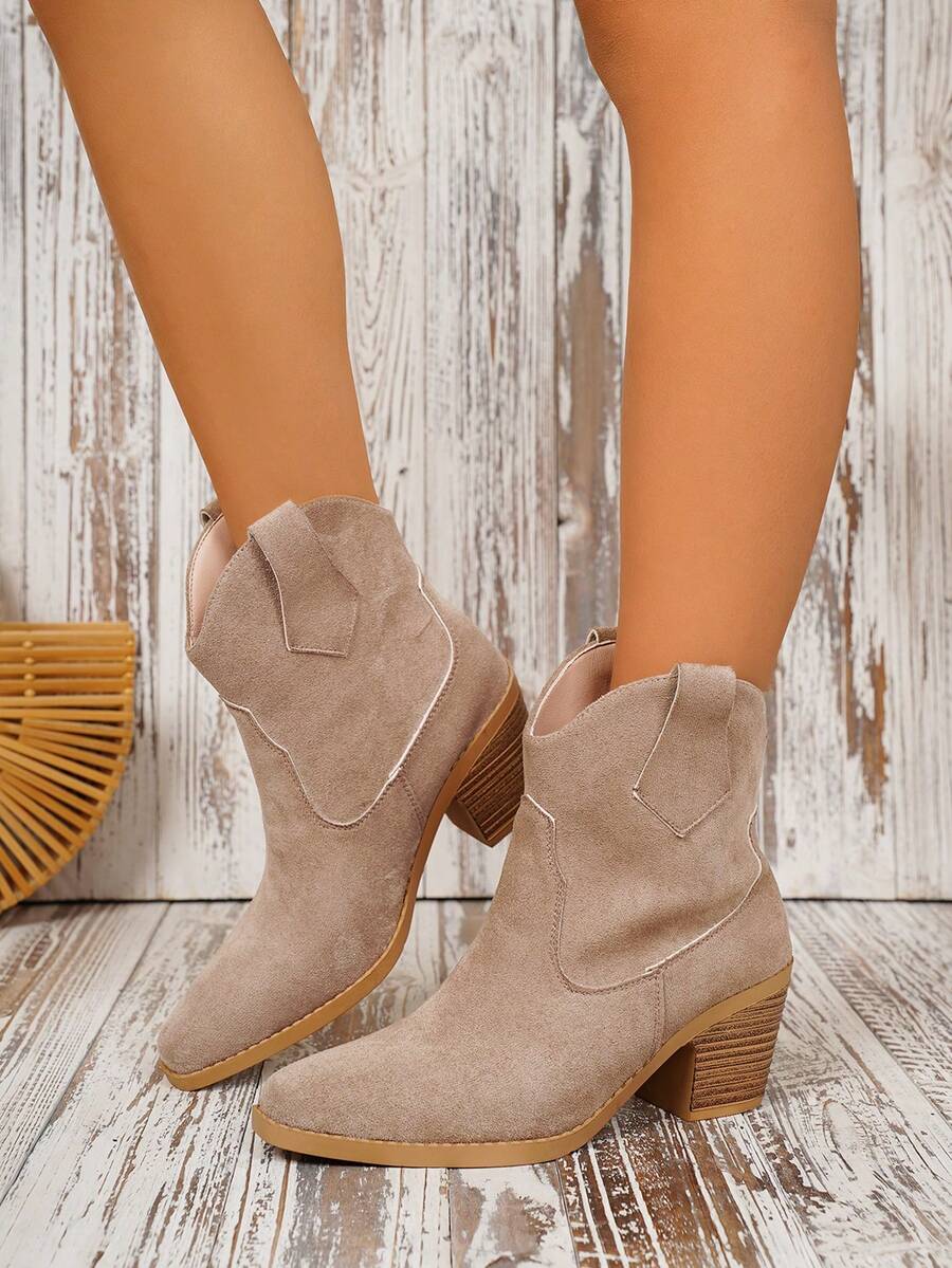 Ženske retro čizmice s debelim potpeticama i V-izrezom, svestrani evropski stil plus veličina, proleće/jesen