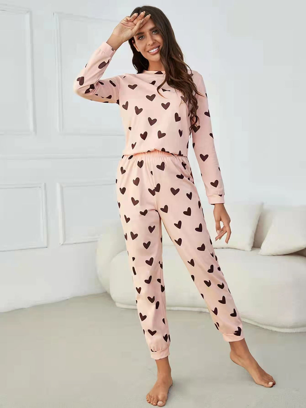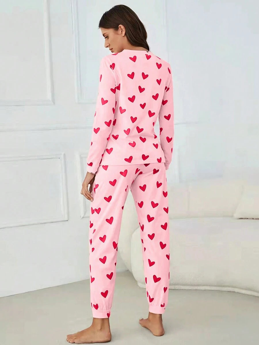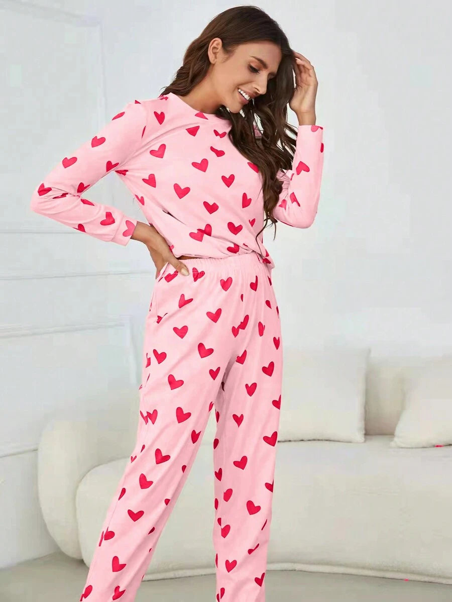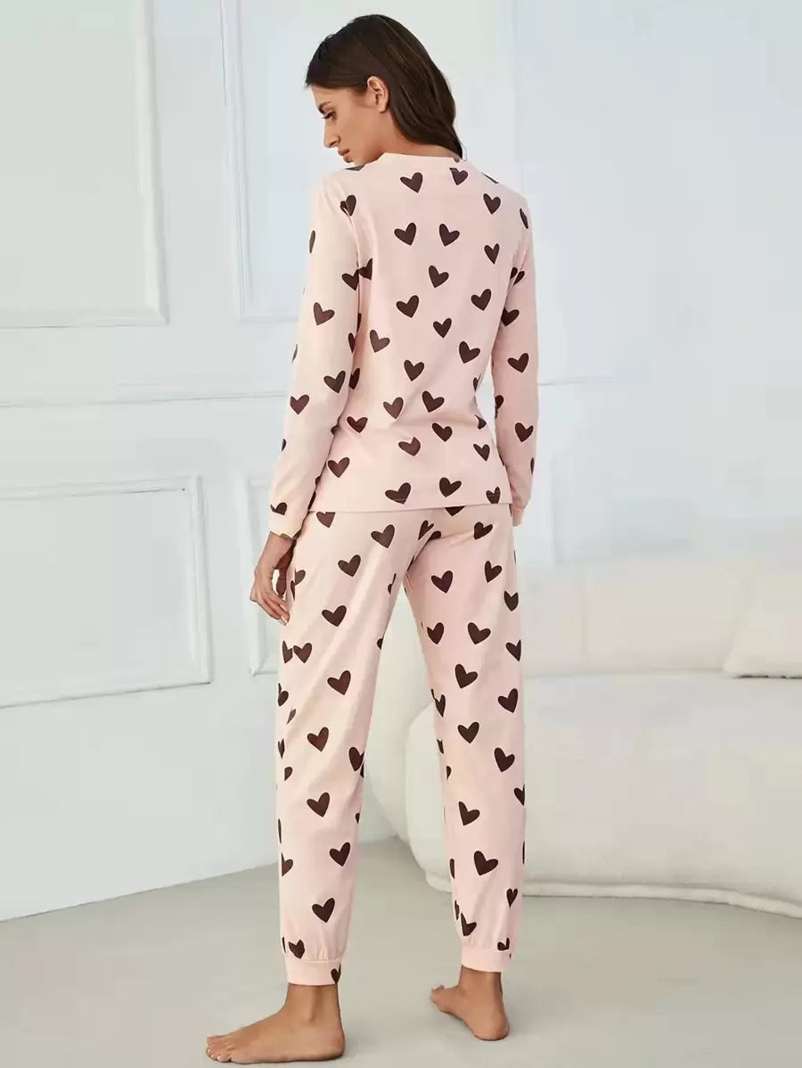 Ženski ležerni ružičasti kupaći komplet s printom srca, soka od rastezljive tkanine, udobne i elegantne detalje, jesensko-zimska odjeća