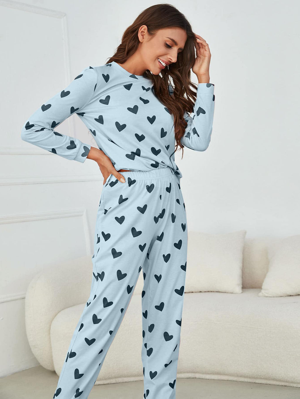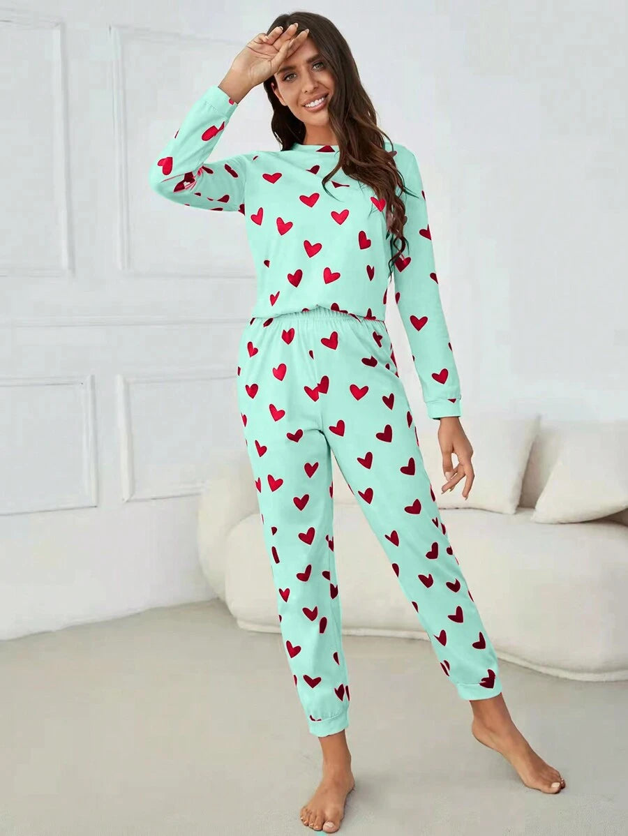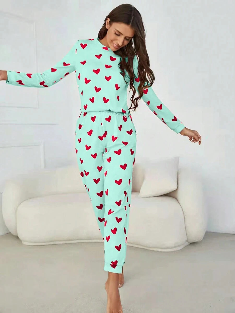 Ženski ležerni ružičasti kupaći komplet s printom srca, soka od rastezljive tkanine, udobne i elegantne detalje, jesensko-zimska odjeća